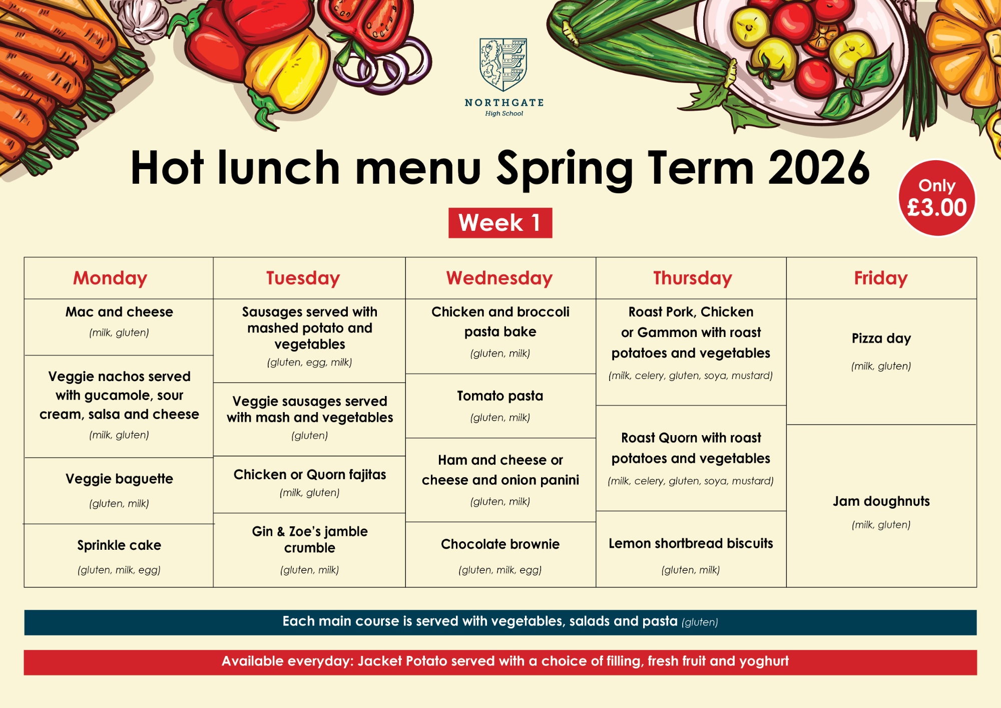 The meals are a fixed price of £3.00. Please note that, unless in receipt of free school meals, students will only be served a meal if their Bromcom account is in credit.